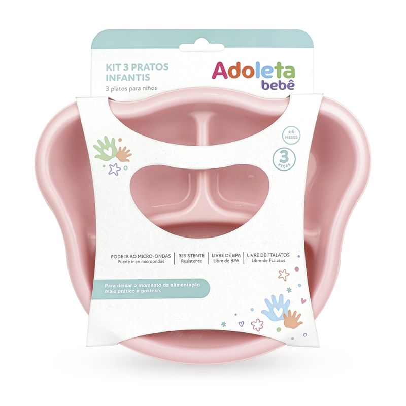 O Kit 3 Pratos Infantis Adoleta Bebê não pode faltar durante a fase de introdução alimentar do pequeno. Possui divisória que mantêm os alimentos separados para que o bebê sinta o gostinho de cada um e desenvolva melhor o seu paladar. Além disso, torna a vida da mamãe mais prática, podendo ir ao freezer e ao micro-ondas. O kit acompanha 3 prato com capacidade de 800 ml, fabricados em material seguro, 100% atóxico, e com design de ursinho para deixar o momento da alimentação mais lúdico e divertido.