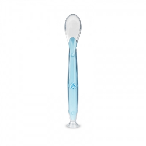 - Com ventosa na base da colher que adere firmemente à mesa ou cadeirão de alimentação, evitando que a colher caia e minimizando os derramamentos