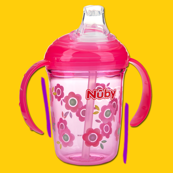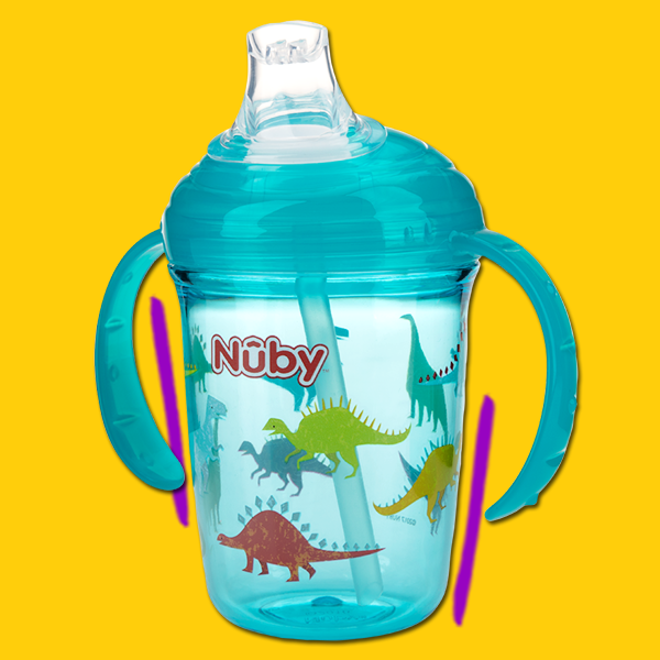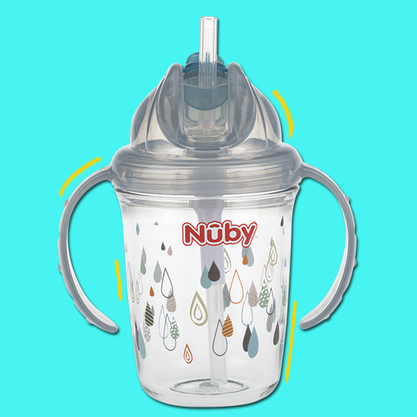 Este copo facilita a transição dos pequenos da mamadeira para o copo. Um de seus diferenciais são as suas alças, especialmente desenvolvidas para as pequenas mãos segurarem com firmeza e segurança. É um produto 2 em 1: pode ser usado com ou sem canudo.