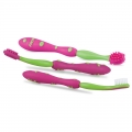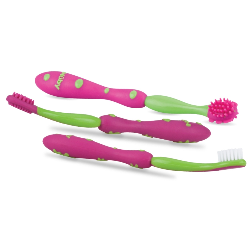 O Kit de Cuidado Oral Nûby promove o desenvolvimento de uma boa higiene bucal desde os primeiros meses do bebê. São 3 escovas diferentes, todas projetadas para dar todo conforto e saúde que a boquinha do bebê precisa e com formato especial para as pequenas mãozinhas. Suas cerdas macias massageiam e higienizam a gengiva e os primeiros dentinhos.