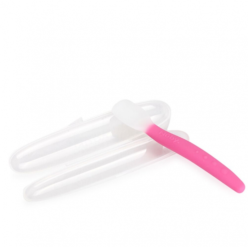 A colher de silicone é macia e flexível, ideal para as primeiras papinhas do bebê. O silicone macio é perfeito para as gengivas sensíveis e os novos dentinhos. A ponta da tem o formato ideal para a introdução da quantidade exata de alimentos e permite limpar o excesso em torno da boca do bebê.