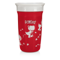 O copo 360° auxilia no desenvolvimento e autonomia da criança, pois permite beber ao redor de toda a borda como os copos comuns, mas, sem vazamentos e sujeiras, pois a válvula integrada à borda libera o líquido apenas na área em que a criança encosta os lábios.