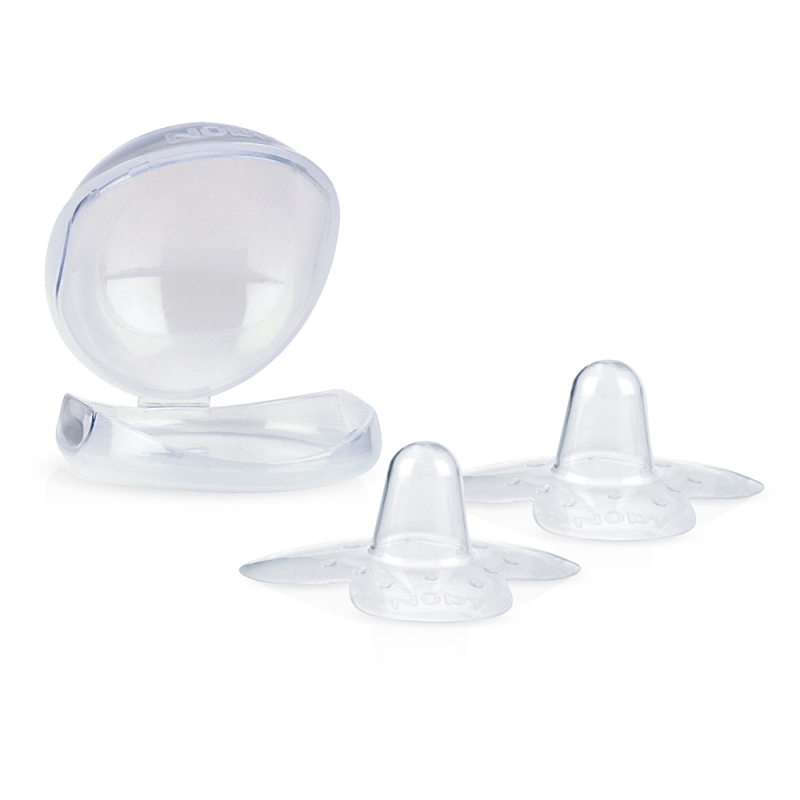 Os protetores de mamilo Nûby foram desenvolvidos para auxiliar a mamãe no processo de amamentação. Indicado em casos de: descida superativa, problemas de pega, mamilo invertido ou plano. Com silicone ultrafino e formato triângular que permite maior contato da pele da mamãe com o bebê.