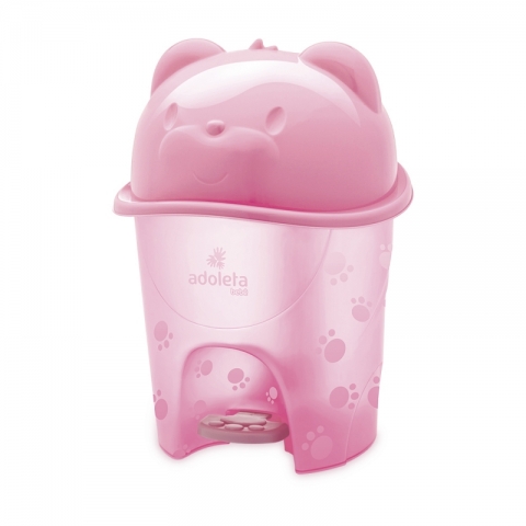 Lixeira com Pedal Fofura Adoleta Bebê possui um novo design, com uma nova carinha de urso e é própria para reutilizar a sacola do mercado sem impedir o funcionamento da tampa.