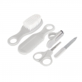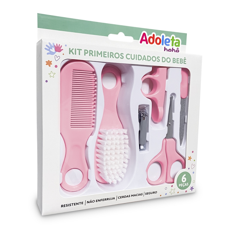 O Kit é composto por: 1 pente com pontas arredondadas, suave e delicado para desembaraçar os fios do seu bebê sem causar desconforto, 1 escova de cabelo com cerdas macias que ajuda a manter o cabelo do bebê sempre arrumado, 1 tesoura com ponta de segurança feita de aço inoxidável durável, garantindo precisão e segurança durante o corte, 1 lixa para acabamento das unhas e 1 cortador de unhas em aço inoxidável com ângulo 360 graus, projetado para proporcionar um corte preciso e seguro e 1 suporte para garantir estabilidade durante o uso do cortador.