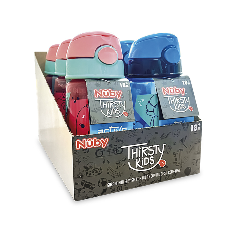 Perfeita para acompanhar a rotina das crianças, a Garrafinha Easy Sip com Alça e Canudo de Silicone Nûby combina praticidade e segurança para manter a hidratação sempre acessível. Com um design funcional, possui tampa com botão de pressão para abrir e fechar facilmente, além de alça integrada para transporte. Seu canudo de silicone macio garante conforto ao beber, enquanto a tampa evita vazamentos quando fechada.